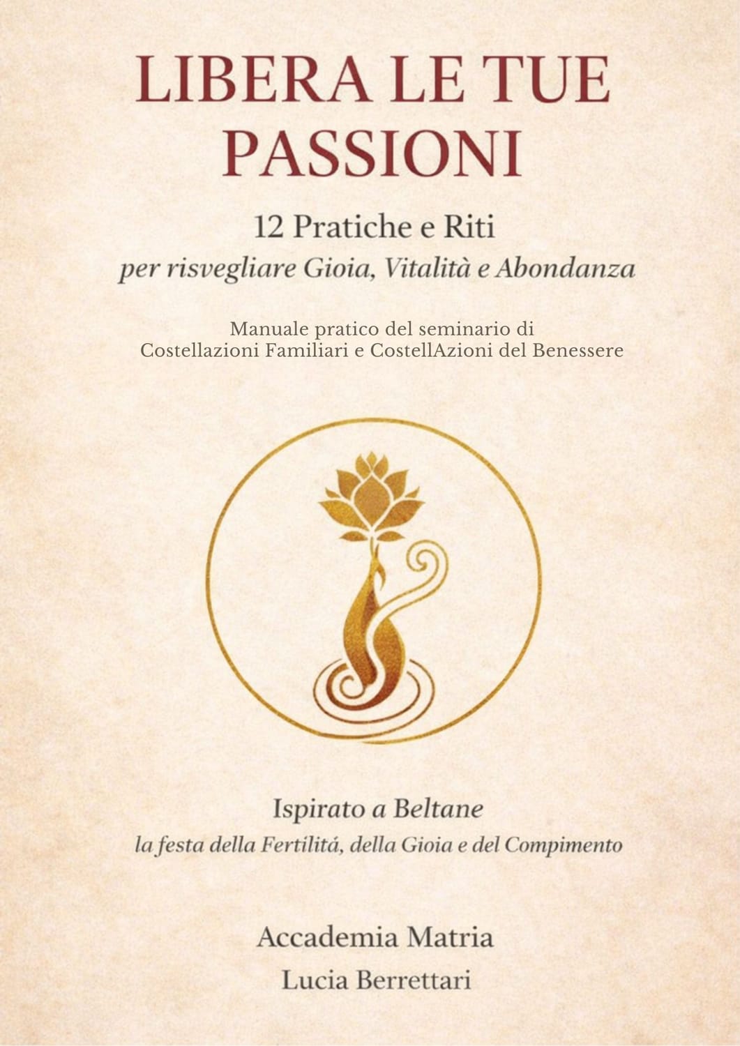 Durante il weekend ricevi l’intero percorso digitale (manuali, pratiche, meditazione e rito trasformativo) e il manuale “Libera le Tue Passioni” in versione stampata.